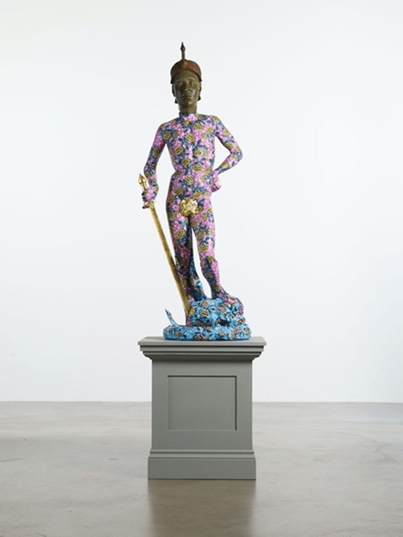 Shonibare, Y. (2021) Unintended Sculpture (Donatello’s David and Ife head). [Fibreglass sculpture]. Stephen Friedman Gallery, London. Photographed by Stephen White & Co. Available at: https://yinkashonibare.com/artwork/unintended-sculpture-donatellos-david-and-ife-head/