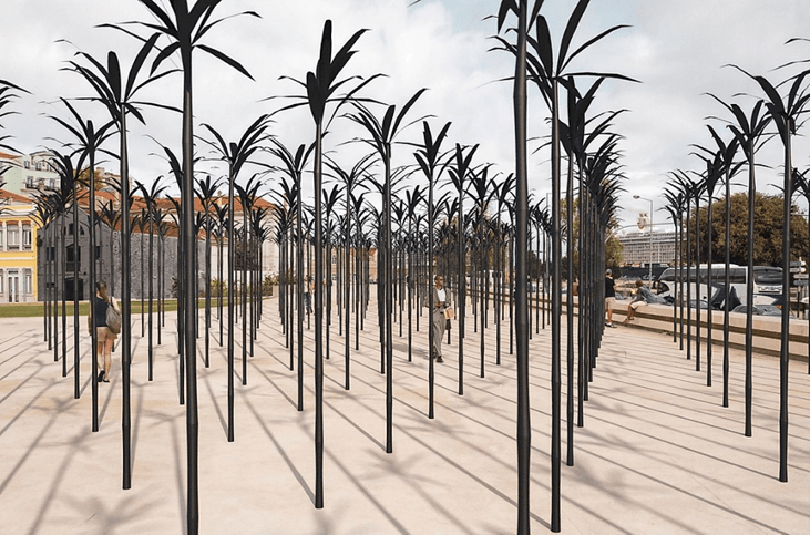 Henda, K.K. (2021) Plantation. [Aluminium]. Campo das Cebolas, Lisbon. Available at: https://www.memorialescravatura.com/