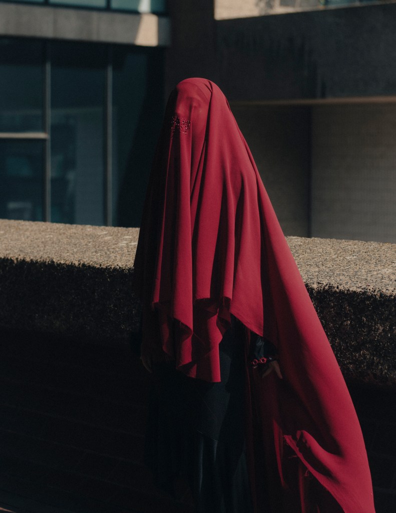 Amina is photographed wearing the veil while walking around The Barbican estates in London. The Barbican was used as the location for the photography as it is an institution known for its anti-Palestinian censorship.