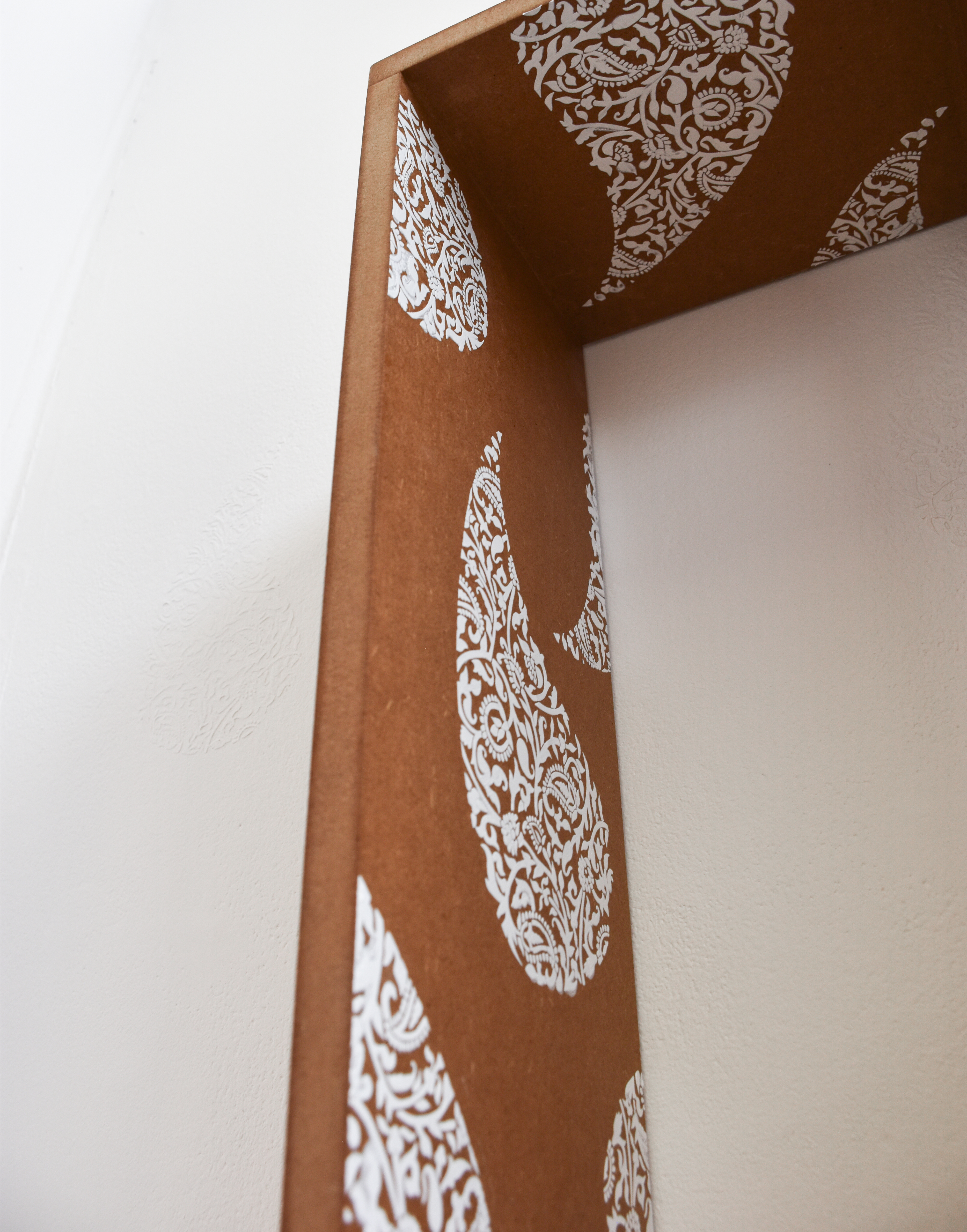 Throughout the space, modern iterations of the Paisley pattern are repeated in the objects within the cabinets and onto the walls. I have used the Paisley symbol and the history attached to the design to remember and acknowledge the past.