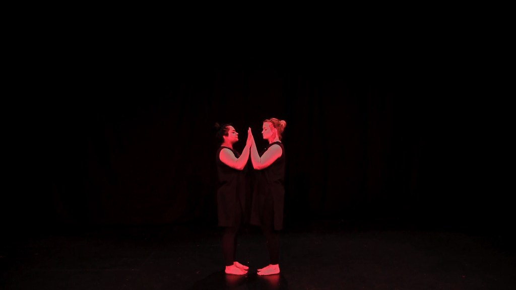 Tethered merges Bharatanatyam classical dance with a contemporary dance performed as a duet by Molly (White) and Lavanya (Indian) portraying the two parts of a mixed-raced identity: illustrating tension, distance and at times synchronisation. The deep red tone, symbolic of suffering and bloodshed, is a consistent element within this body of work seen through the lighting and objects the dancers interact with. For example, The empire is a de-constructed map revealing a violent presentation of countries colonised by the British through the dense red fibres formed at Britain’s position on the map. Lavanya interacts with the map by tracing the string connecting Britain and India in an act of understanding the past. Tethered also includes scenes of the dancers physically connected by earrings – forcing a closeness and, in turn, an understanding of each other.